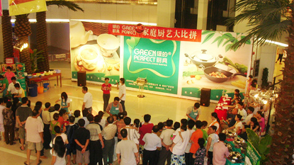 4月24日,由CCBD中擂負(fù)責(zé)品牌策劃工作的“綠的廚具”,在廣百時代廣場店舉行 “家庭廚藝大比拼”活動,這是針對“綠的”品牌主題展開的一次營銷活動,比賽邀請美食專家進(jìn)行點(diǎn)評,且所有比賽用具均采用綠的品牌。通過比賽,將綠的品牌的快樂與健康理念傳遞給每個人,讓消費(fèi)者見證綠的鍋具精品質(zhì),使綠的鍋具的品牌深入民心。